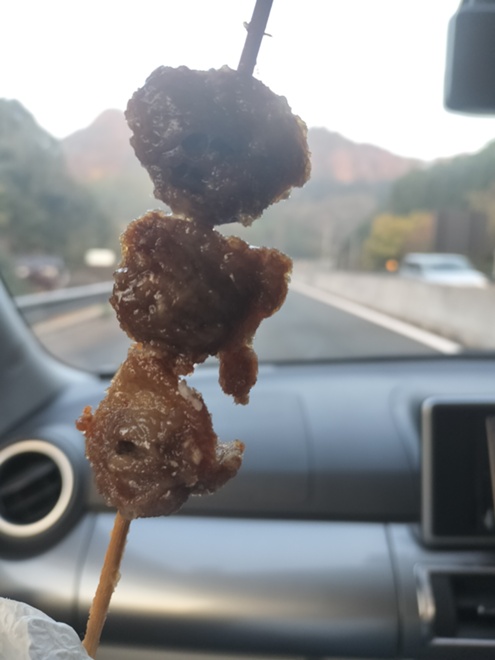 帰りに耶馬渓のおきなさんで砂ずりのからあげを